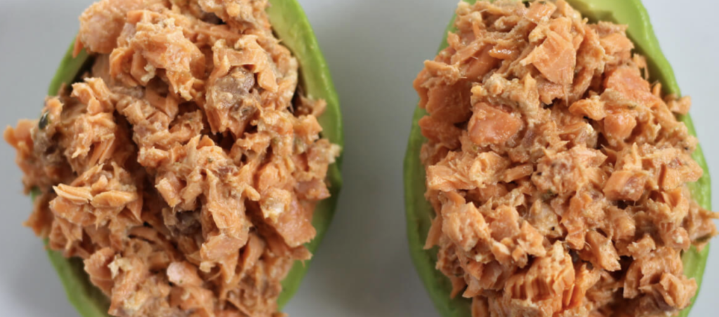 Stuff the hollowed out avocado halves with the salmon puree mixture. Enjoy!
